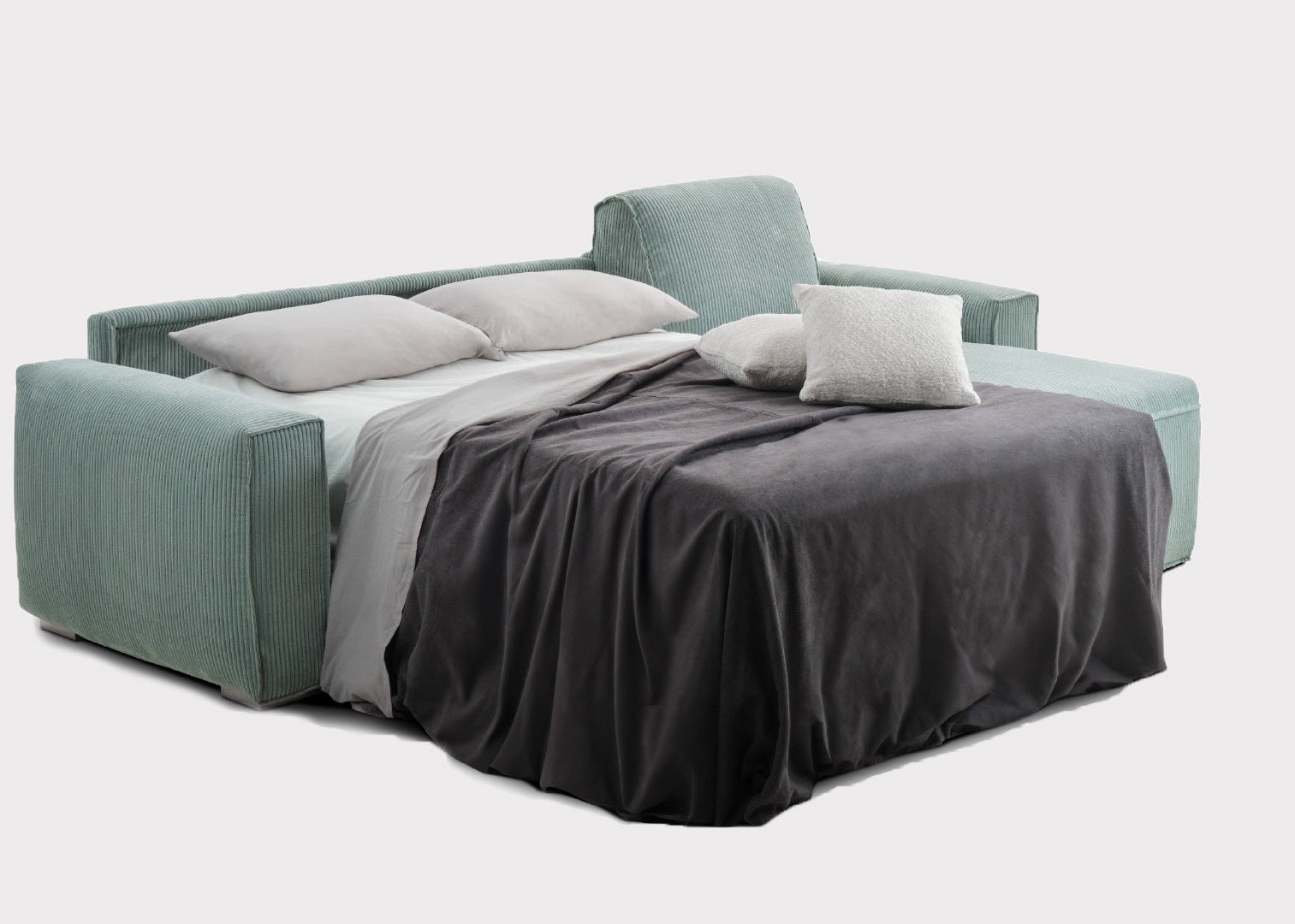Este dotată cu mecanism de extensie tip ribalta produs în Italia, recunoscut pentru fiabilitate și confort. Extensia se transformă rapid într-un pat cu saltea premium inclusă, oferind un somn confortabil comparabil cu cel al unui pat clasic.