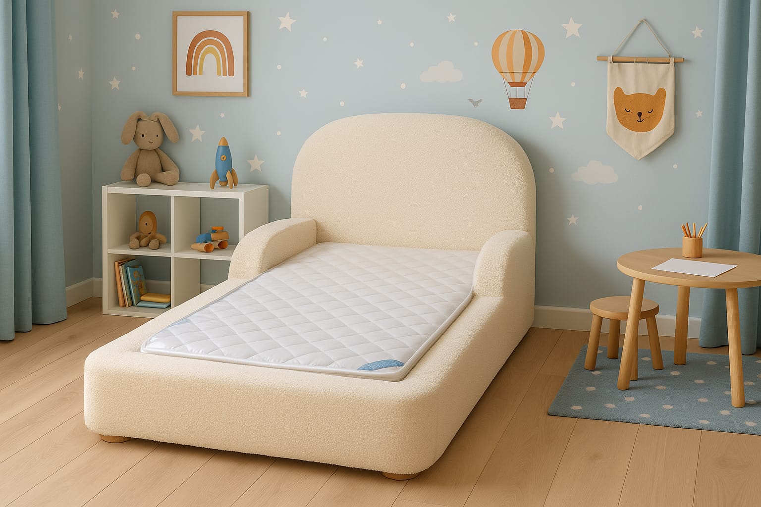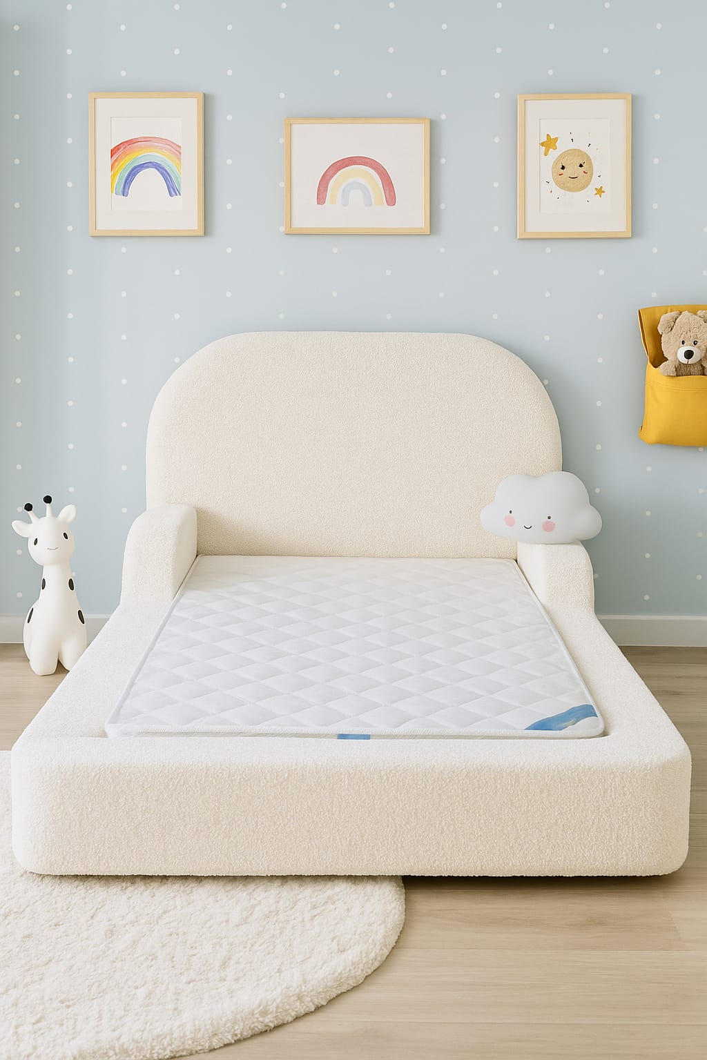 Patul pentru copii Lun este acum aici și nu există nimic asemănător! Patul perfect pentru a face tranziția de la pătuț la propriul pat de băiat mare/fată mare, fără ca acest lucru să fie copleșitor pentru tine sau pentru micuțul tău. Am proiectat patul pentru copiiLuna pentru a emana un stil irezistibil, dar să fie funcțional și sigur pentru copiii de toate vârstele. Acest lucru îl face un pat în care copilul tău mic poate crește, iar pentru un copil mai mare, un loc în care să se simtă confortabil, cald și în siguranță.