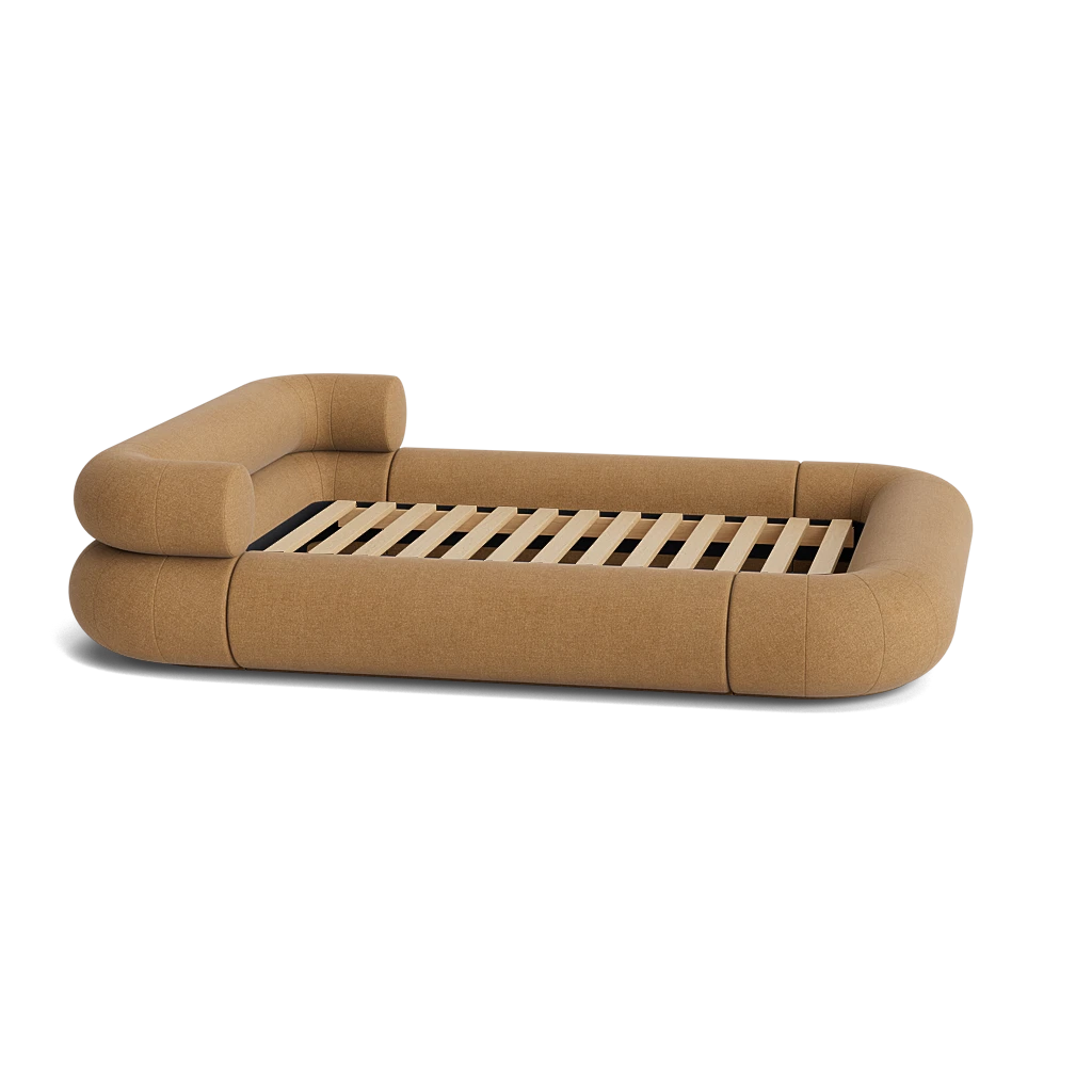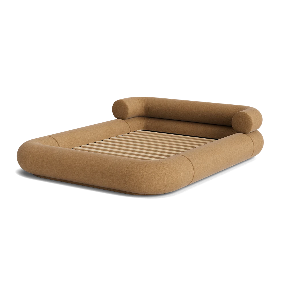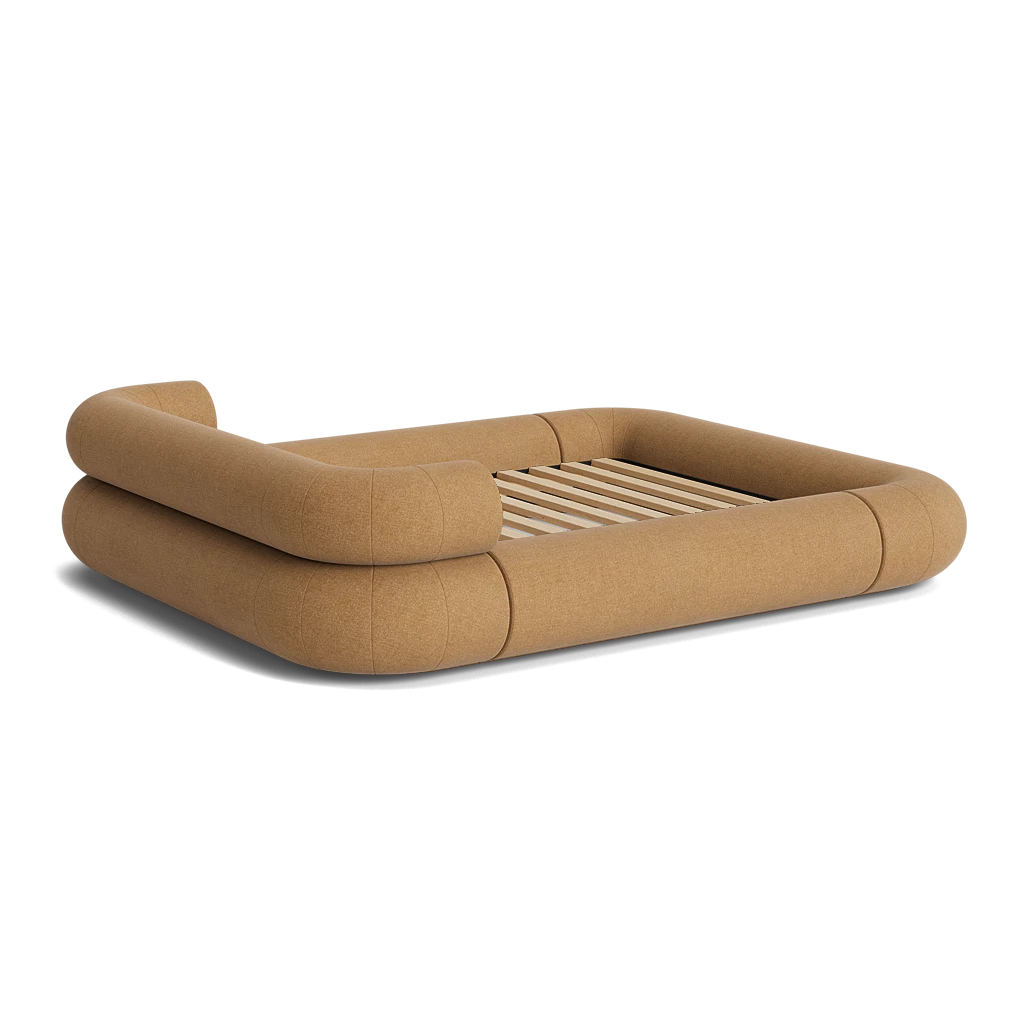 Pat tapitat cu design contemporan, inspirat din forme organice si linii fluide, ideal pentru un dormitor modern si relaxant. Structura sa joasa, cu spatar generos ofera un aspect de tip canapea, transformand patul intr-un adevarat element de design.